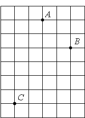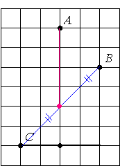 Задание На клетчатой бумаге с размером клетки 1 см × 1 см отмечены точки A, B и C. Найдите расстояние от точки A до середины отрезка BC. Ответ выразите в сантиметрах.