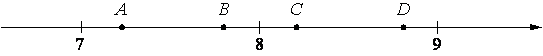 Задание На координатной прямой отмечены точки A, B, C, D. Одна из них соответствует числу √77.