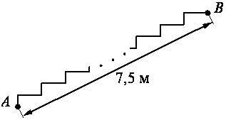 Лестница соединяет точки A и B. Высота каждой ступени равна 10,5 см, а длина — 36 см. Расстояние между точками A и B составляет 7,5 м. Найдите высоту, на которую поднимается лестница (в метрах).