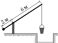 На рисунке изображён колодец с «журавлём». Короткое плечо имеет длину 2 м, а длинное плечо — 6 м. На сколько метров опустится конец длинного плеча, когда конец короткого поднимется на 0,5 м?