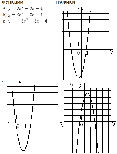 Установите соответствие между функциями и их графиками.