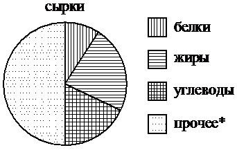 На диаграмме показано содержание питательных веществ в творожных сырках.