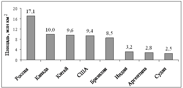 На диаграмме представлены некоторые из крупнейших по площади территории стран мира.