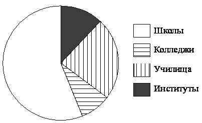 Задание В городе из учебных заведений имеются школы, колледжи, училища и институты. Данные представлены на круговой диаграмме.