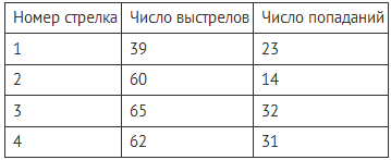 Задание В таблице представлены результаты четырёх стрелков, показанные ими на тренировке.