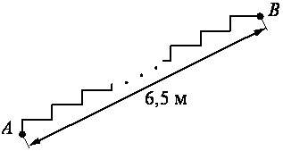 Лестница соединяет точки A и B. Высота каждой ступени равна 16,5 см, а длина — 28 см. Расстояние между точками A и B составляет 6,5 м. Найдите высоту, на которую поднимается лестница (в метрах).